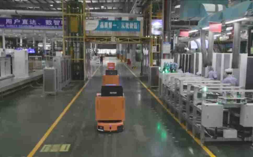 为车载冰箱物流配送打造的智能解决方案,,,,包含产中物流通过潜伏举升AMR搬运至线边,,,产后成品物流智能仓储,,,流程包含产中物流智能齐套入库,,,线边安灯叫料AMR智能配送至线边,,成品入库、、、出库,,,,通过无人堆高车机器人,,智能仓储管理替代人工作业管理,,,,实现更高存储、、、、更高效率、、、更具柔性化的解决方案。。。。