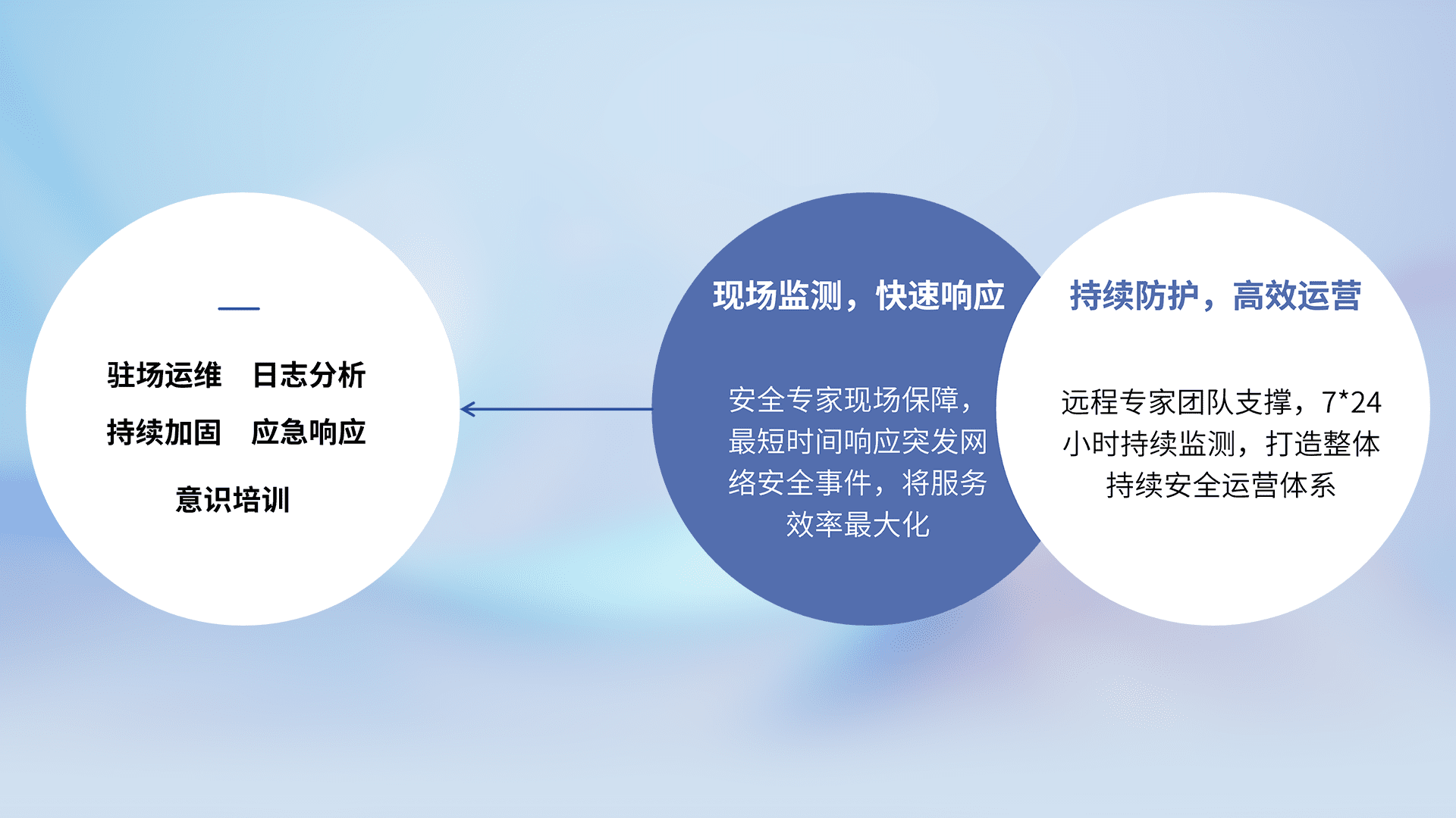 针对客户行业特性,,,,提供专属的一站式安全管理服务,,帮助客户全面感知网络空间威胁,,通过安全专家的线上、、线下防护支持,,,实现风险闭环,,将安全保障常态化,,为客户打造常态化安全运维运营服务。。